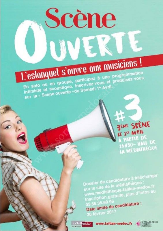 Dans le cadre de la valorisation des pratiques amateurs, la Ville du Taillan-Médoc met en place en 2016 des Scènes Ouvertes : une fois par trimestre, un artiste solo ou un groupe peut se produire dans le Hall du Pôle Culturel, pour un set acoustique de 20 minutes maximum.