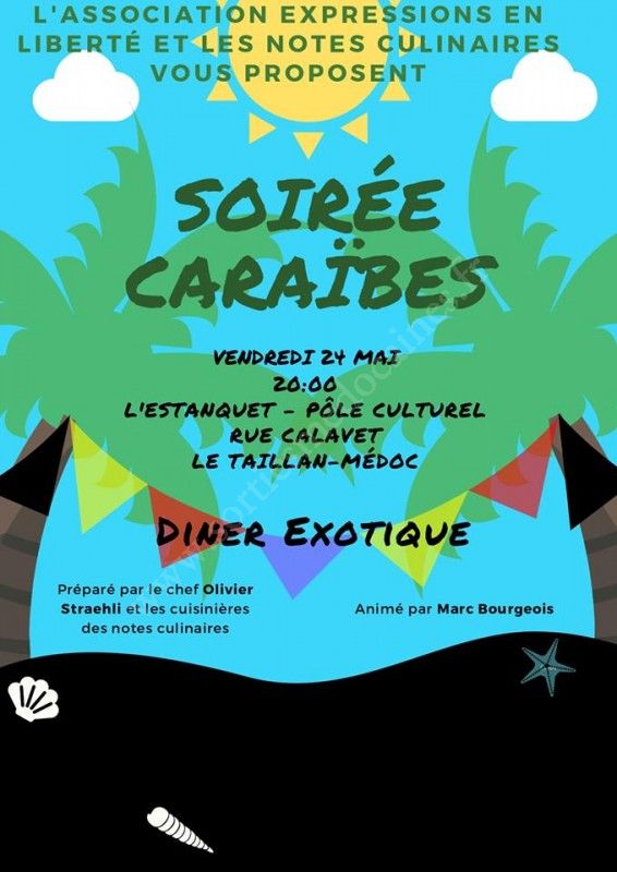 L'association Expressions en liberté et les notes culinaires vous donnent rendez-vous le vendredi 24 Mai au Pôle culturel pour un nouveau restaurant éphémère : soirée caraïbes en perspective !
