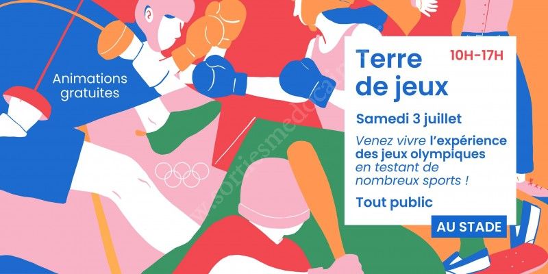 L’évènement « Terre de jeux 2024 » aura lieu le samedi 3 juillet de 10h à 17h au stade municipal. L’occasion de passer un bon moment en famille et de vous initier à différents sports.