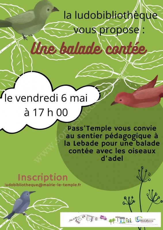 A 17h00, sur le sentier pédagogique, une ou plusieurs lectures seront proposées par Sylvie sur le thème des oiseaux.