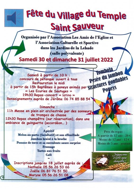Inscription jusqu'au 18 juillet 2022 auprès de : Nathalie (05.56.26.53.66) ou Joëlle (06.81.76.51.50) ou Maryse (05.56.26.51.08)