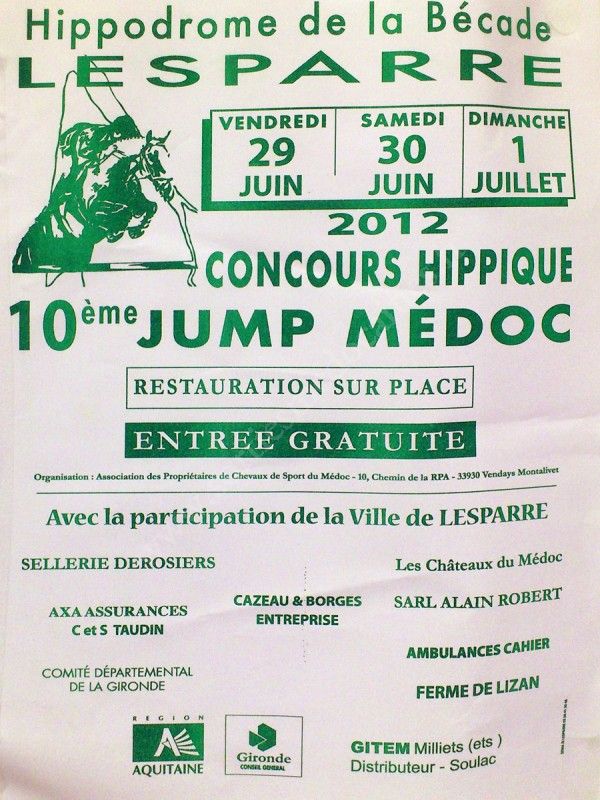 Concours hippique : 10ème Jump Médoc organisé par l'Association des Propriétaires de Chevaux de Sport du Médoc avec la participation de la ville de Lesparre.