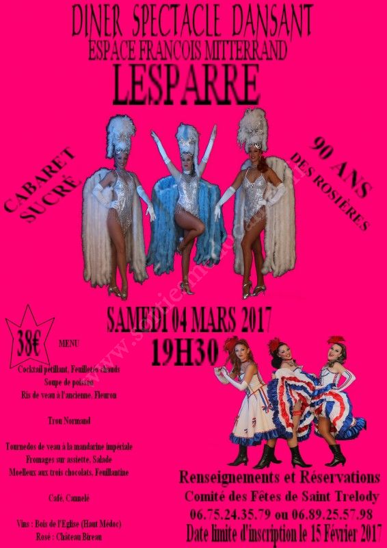 Diner spectacle Cabaret dansant pour fêter le 90ème couronnement des Rosières de Saint Trélody, organisé par le Comité des Fêtes de St Trélody.