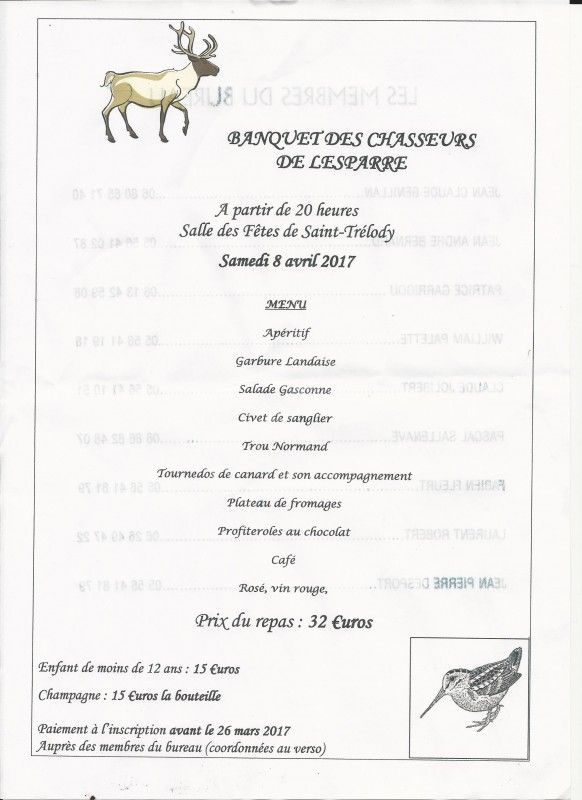 Paiement à l'inscription avant le 26 mars 2017 auprès des membres du bureau ou par téléphone.