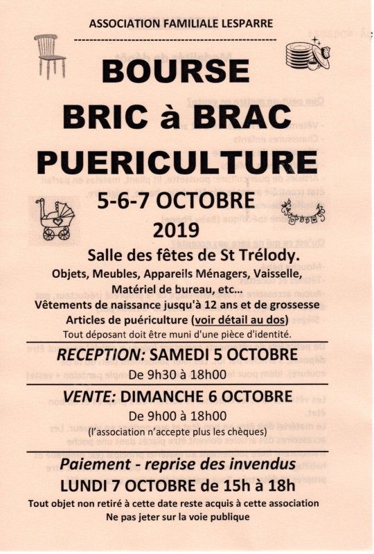Bourse au bric à brac et puériculture organisée par l'Association Familiale Lesparre.