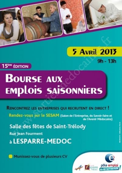 Lors du Salon SESAM, pôle emploi organise la Bourse aux Emplois Saisonniers avec près de 50 employeurs venus spécialement recruter pour la saison 2013 en proposant plus de 550 offres d’emploi.