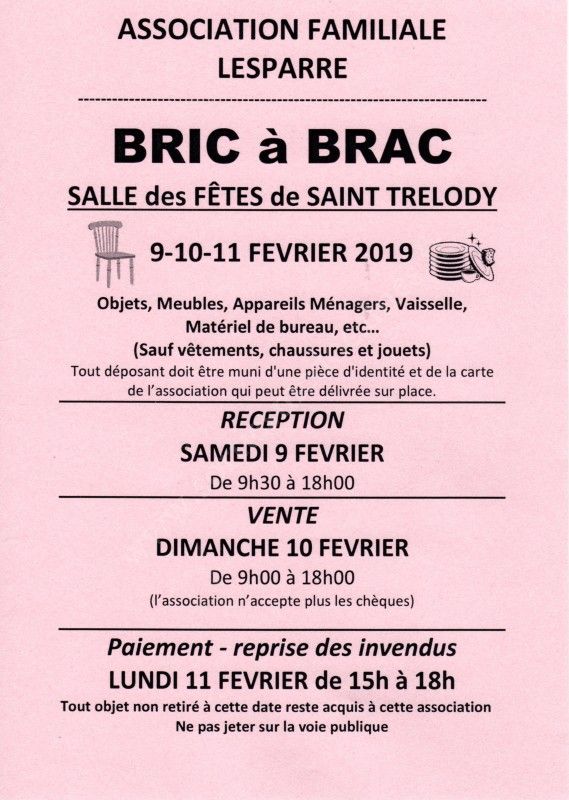 Bric à Brac organisée par l'Association Familiale Lesparre.