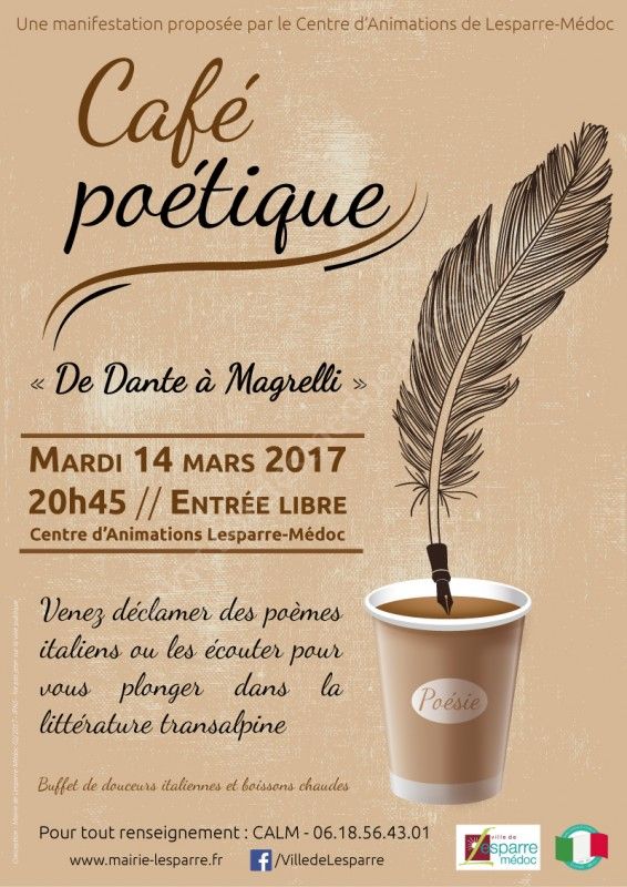 Le thème de la saison culturel 2016-2017 de la Ville étant l'Italie, venez déclamer des poèmes italiens ou les écouter pour vous plonger dans la littérature transalpine.