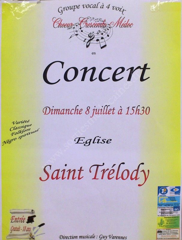 Venez assister au concert Choeur Crescendo Médoc sous la direction musicale Guy Varennes.