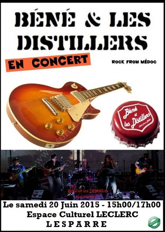Le groupe de Rock " Béné et les Distillers " Rock from Médoc anticipera la Fête de la Musique à l'occasion d'un concert le 20 juin 2015 de 15h00 à 17H00 en show case à l'Espace Culturel Leclerc.