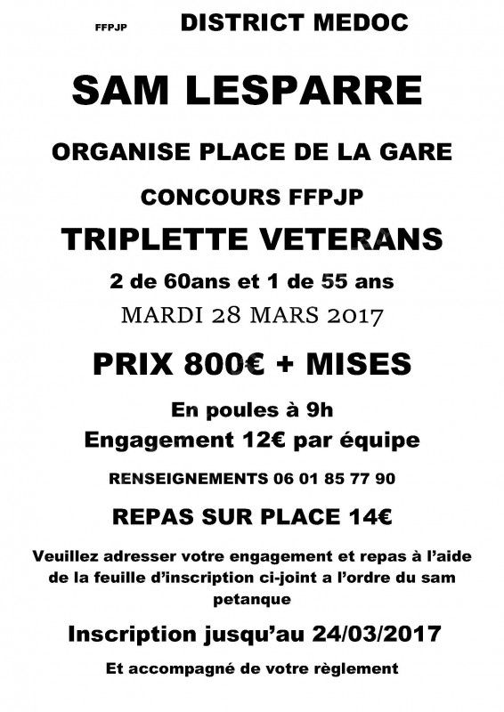 SAM Lesparre organise un concours FFPJP TRIPLETTE VETERANS