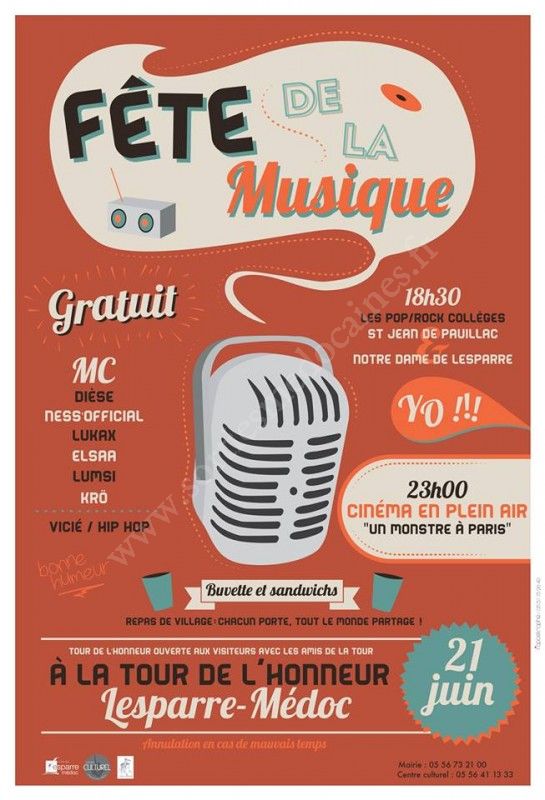 Venez assister à la fête de la musique à Lesparre, vous pourrez ainsi découvrir de nombreux artistes de la région !! :