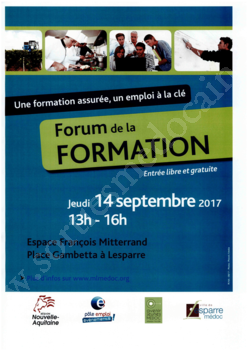 Forum de la Formation organisé le jeudi 14 septembre 2017, par la Mission locale en partenariat avec Pôle Emploi et la Région Nouvelle Aquitaine, avec le soutien de la Ville de Lesparre-Médoc.