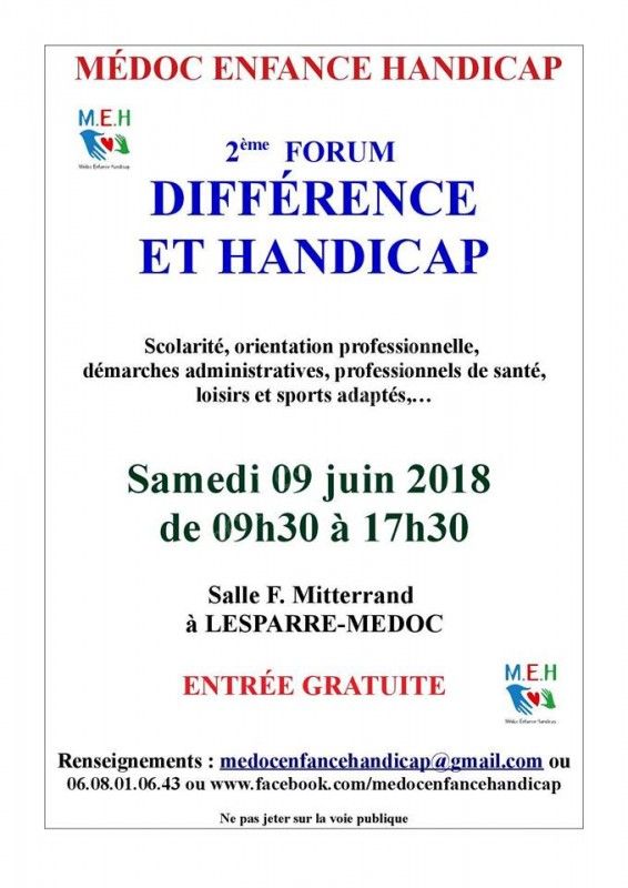Forum annuel pour connaître toutes les possibilités offertes en Médoc qui soient en relation avec la différence et le handicap.