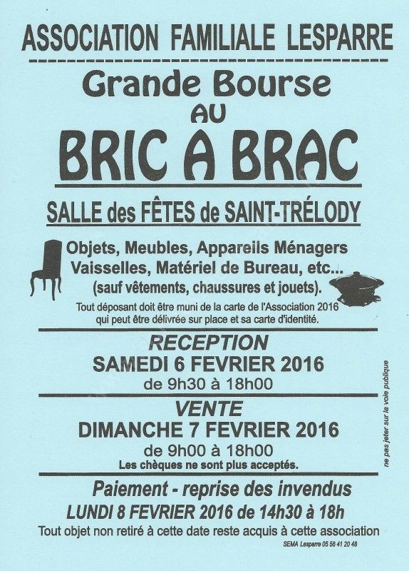 Grande Bourse au Bric à Brac organisée par l'Association Familiale Lesparre.