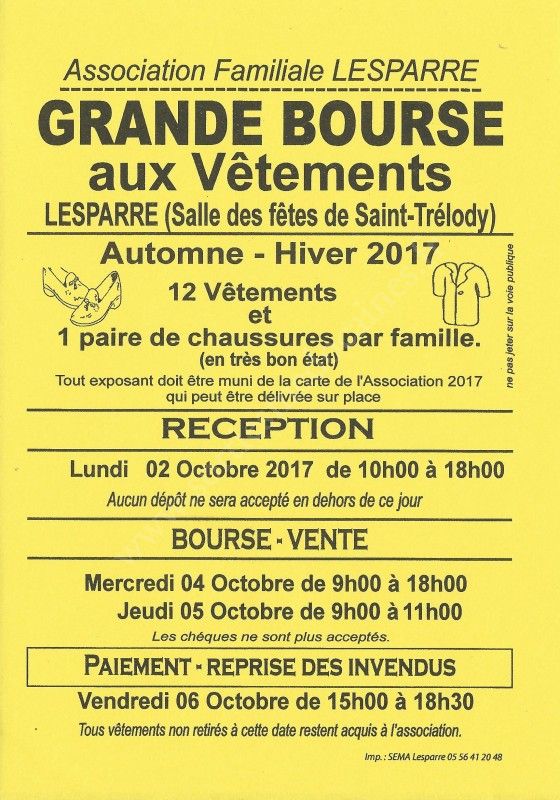 Grande bourse aux vêtements Automne Hiver organisée par l'Association Familiale Lesparre.