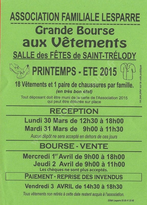 Grande Bourse aux Vêtements organisée par l'Association Familiale de Lesparre.
