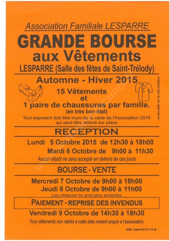 Grande bourse aux vêtements organisée par l'Association Familiale Lesparre.