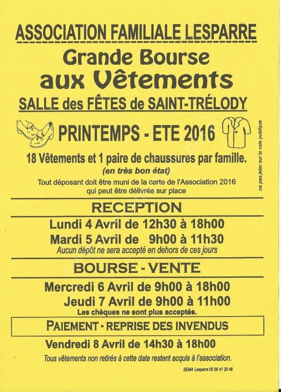 Grande Bourse aux Vêtements Printemps/Eté organisée par l'Association Familiale de Lesparre.