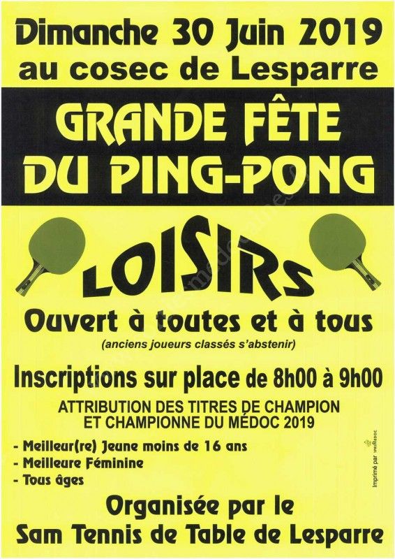 7ème championnat de ping-pong loisirs de la Presqu’île du Médoc organisé par le SAM Tennis de Table de Lesparre.