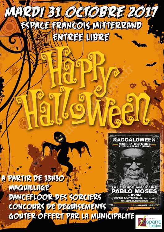 Sans oublier, le soir pour les adultes, Raggaloween : Concert de Pablo Moses (plus d'information en cliquant ici)