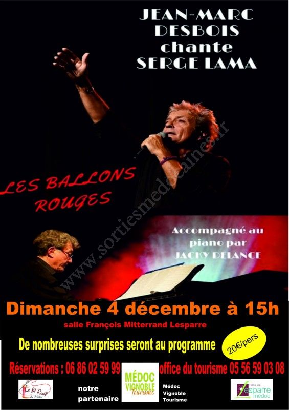 Le fameux Jean-Marc Desbois compositeur, interprète et animateur TV nous fait l'honneur de venir à Lesparre-Médoc, nous présenter son spectacle "Serge Lama".