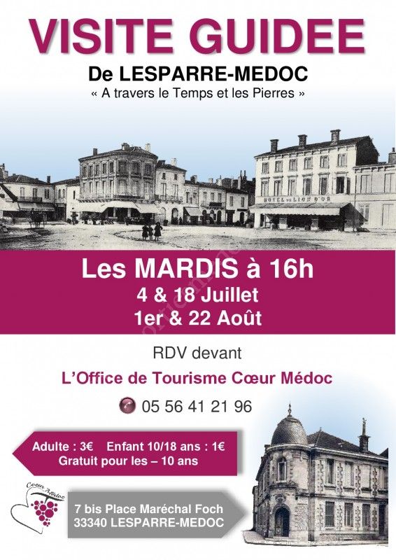 Visite guidée de Lesparre-Médoc "A travers le Temps et les Pierres" les 4 et 18 juillet ainsi que les 1er et 22 août.
