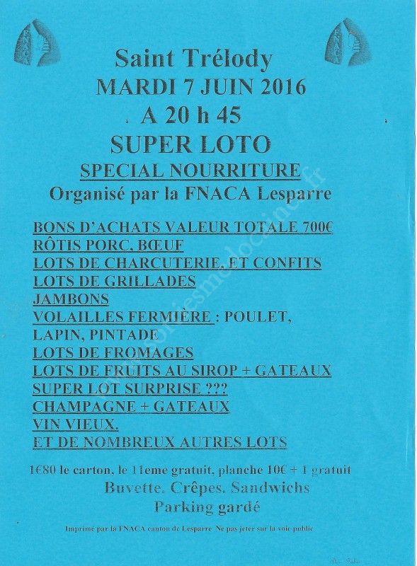 - Lieu : Salle des Fêtes de Saint-Trélody