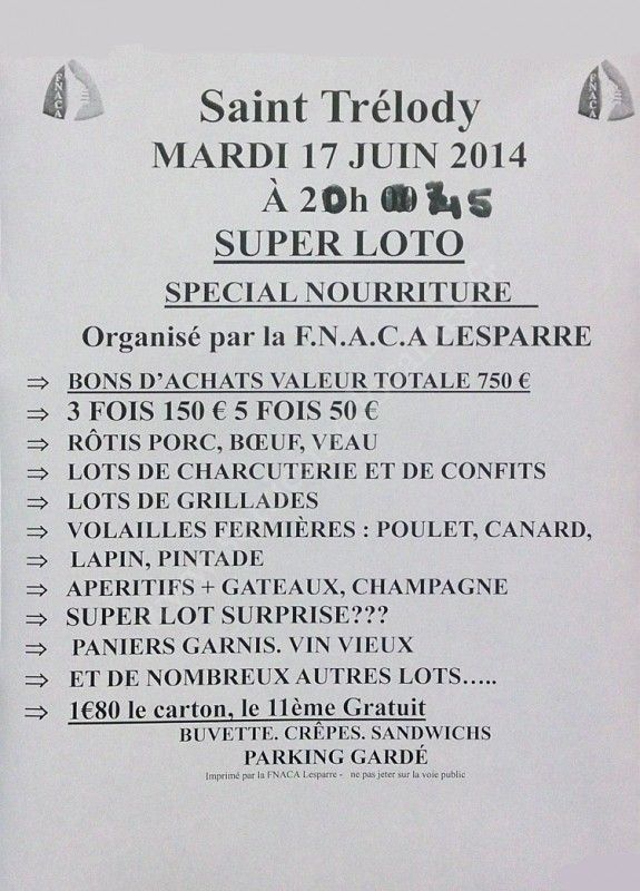 - Lieu : Salle des Fêtes de Saint-Trélody