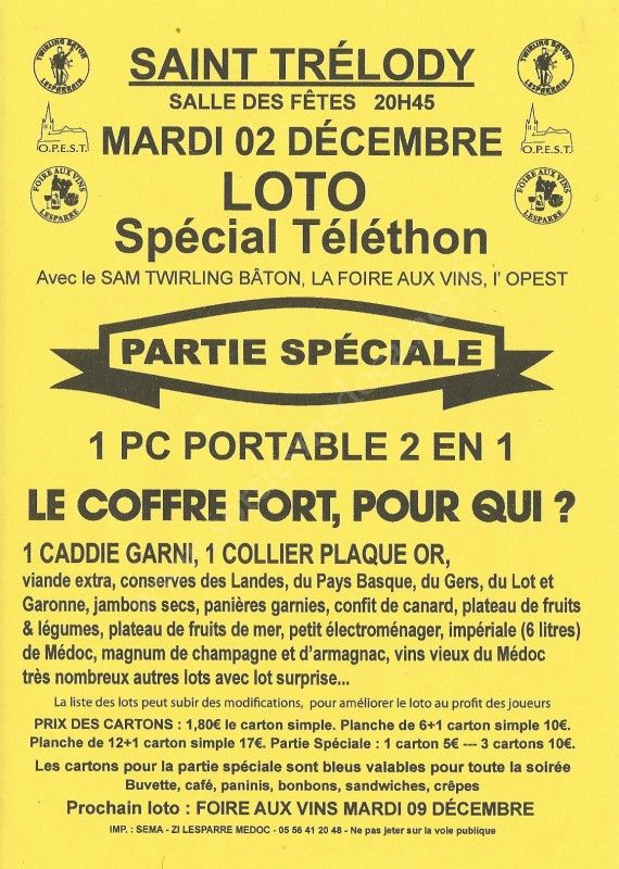 Loto Spécial Téléthon avec le SAM Twirling Bâton, La Foire aux Vins et L'OPEST.