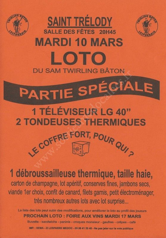 - Lieu : Salle des Fêtes de Saint-Trélody