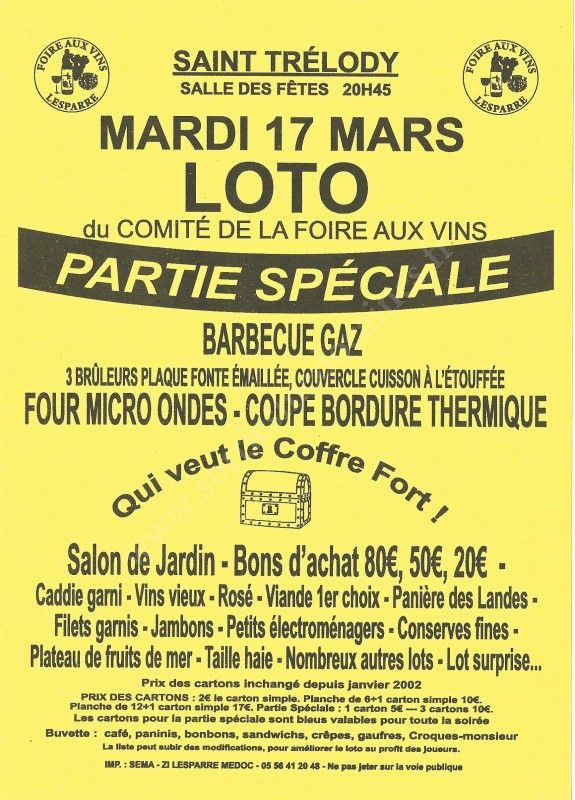- Lieu : Salle des Fêtes de Saint-Trélody