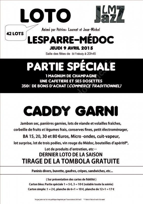 Loto organisé par LM Jazz et animé par Patrice, Laurent et Jean-Michel.