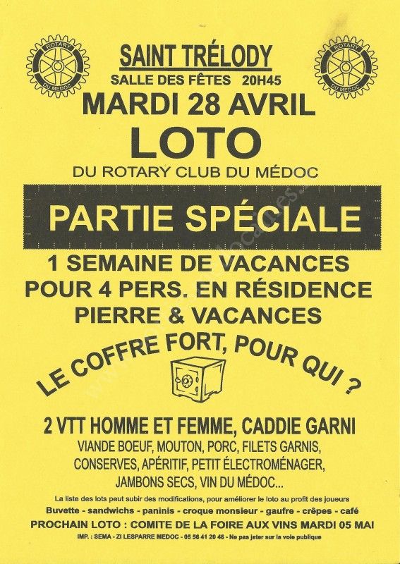 - Lieu : Salle des Fêtes de Saint-Trélody