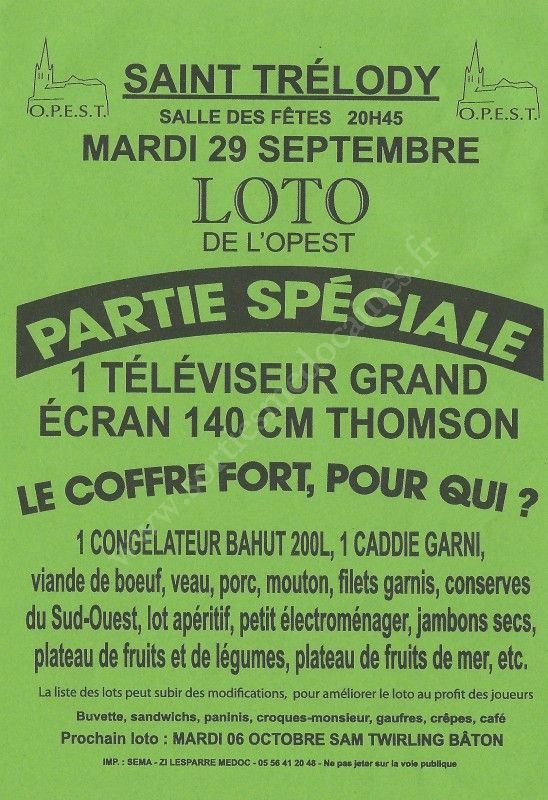 - Lieu : Salle des Fêtes de Saint-Trélody