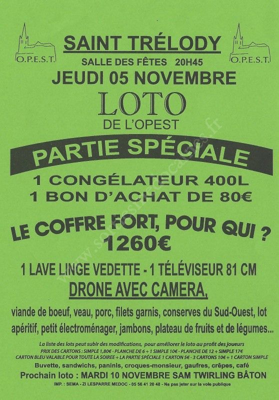 - Lieu : Salle des Fêtes de Saint-Trélody