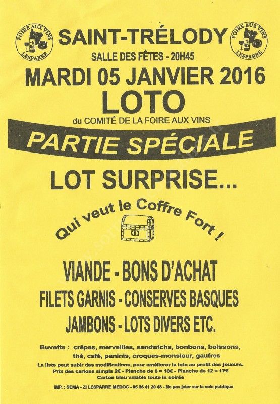 - Lieu : Salle des Fêtes de Saint-Trélody