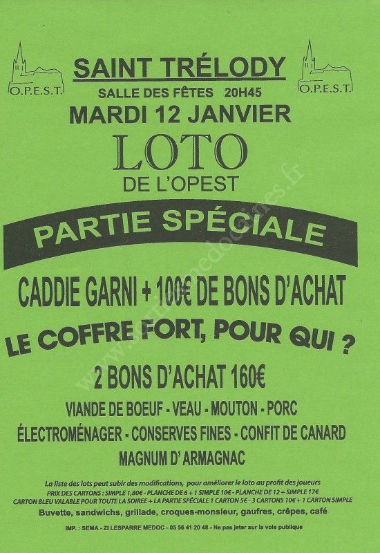 - Lieu : Salle des Fêtes de Saint-Trélody