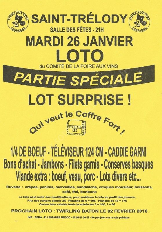 Loto du Comité de la Foire aux Vins.
