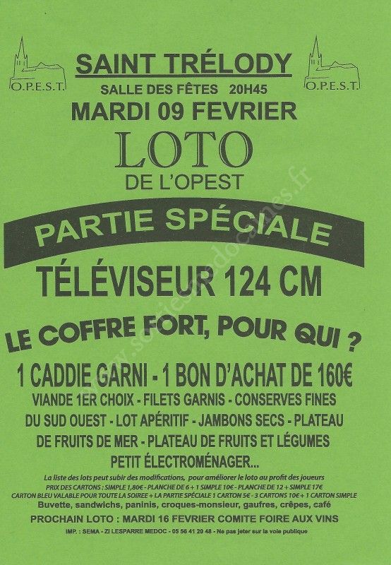 - Lieu : Salle des Fêtes de Saint-Trélody