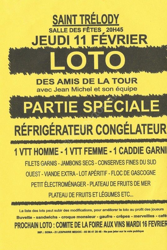 - Lieu : Salle des Fêtes de Saint-Trélody