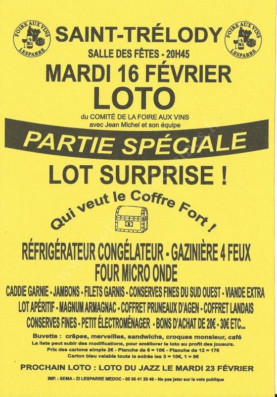 - Lieu : Salle des Fêtes de Saint-Trélody