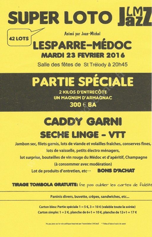 - Lieu : Salle des Fêtes de Saint-Trélody