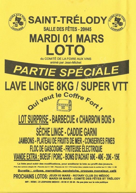 - Lieu : Salle des Fêtes de Saint-Trélody