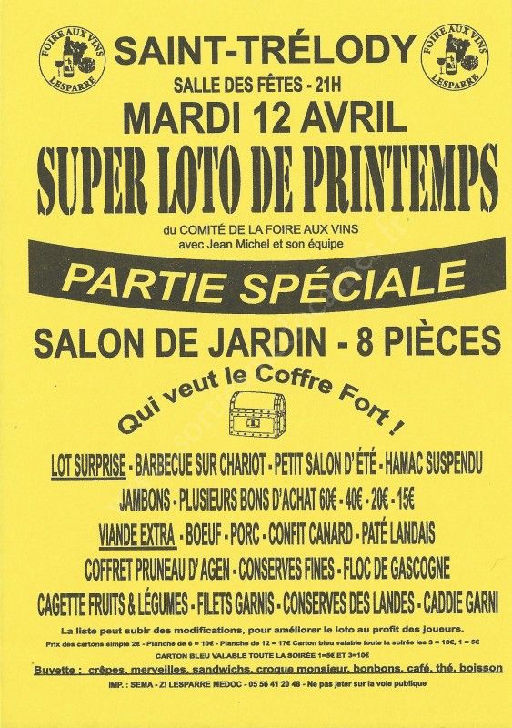 Super Loto de Printemps du Comité de la Foire aux Vins et animé par Jean-Michel et son équipe.