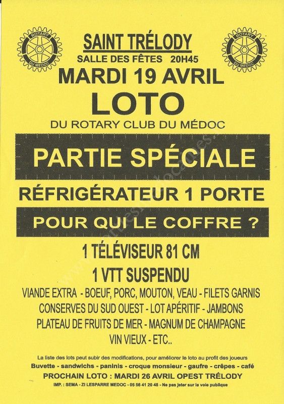 Loto organisé par le Rotary Club du Médoc le 19 avril 2016.