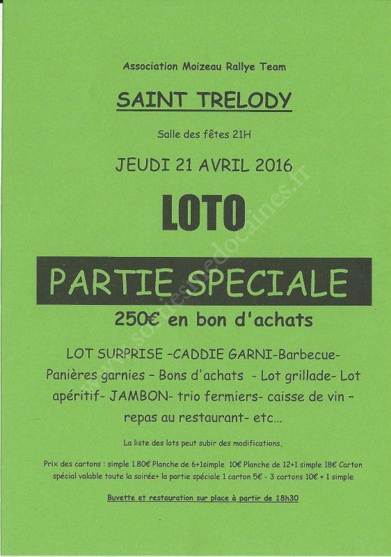- Lieu : Salle des Fêtes de Saint-Trélody