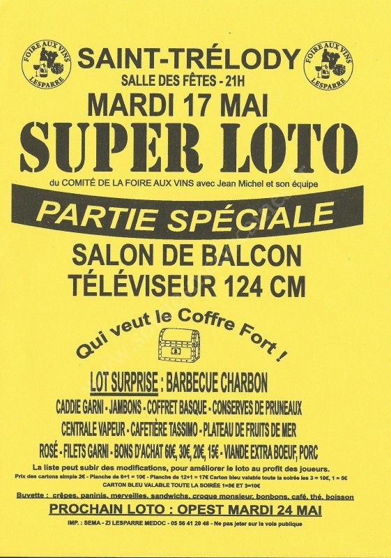 Super Loto du Comité de la Foire aux Vins et animé par Jean-Michel et son équipe.