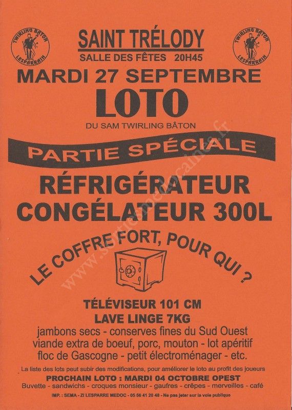 - Lieu : Salle des Fêtes de Saint-Trélody