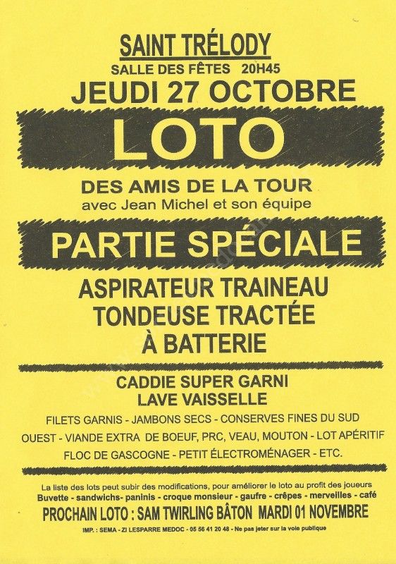- Lieu : Salle des Fêtes de Saint-Trélody